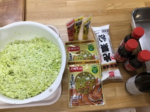 なんと!お好み焼き粉2kgとキャベツは3玉です。あとは色々な物を入れて・・・