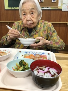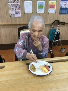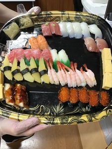 お寿司を召し上がられ皆さんとても美味しそうに召し上がられていました。