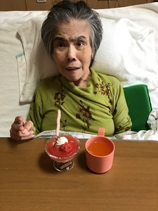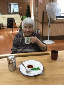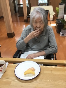 お寿司を食べられない利用者様にはプリンを提供しました。